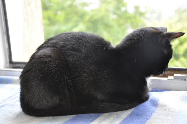 Nano is showing you now the perfect packetstyle. It is very important to put your feet and tail under yourself so they are not flopping around. The more tight package = the better. This style suits every moment and it is very easy to get up from it in case you find a butterfly to catch.