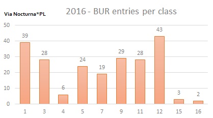 The chart below shows the results gained during 2016 per class (not including NOM, BIS or BIV - they are presented in separate chart).