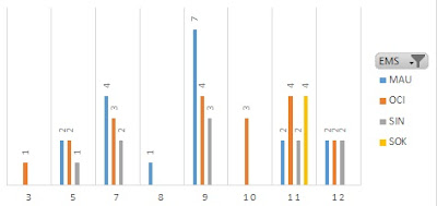 and cats entered per show class. There was only one neuter in total for all these four breeds, class 8 MAU.