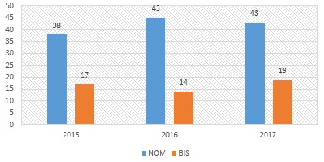 During 2017 44.10% of nominated Abyssinians gained BIS result.